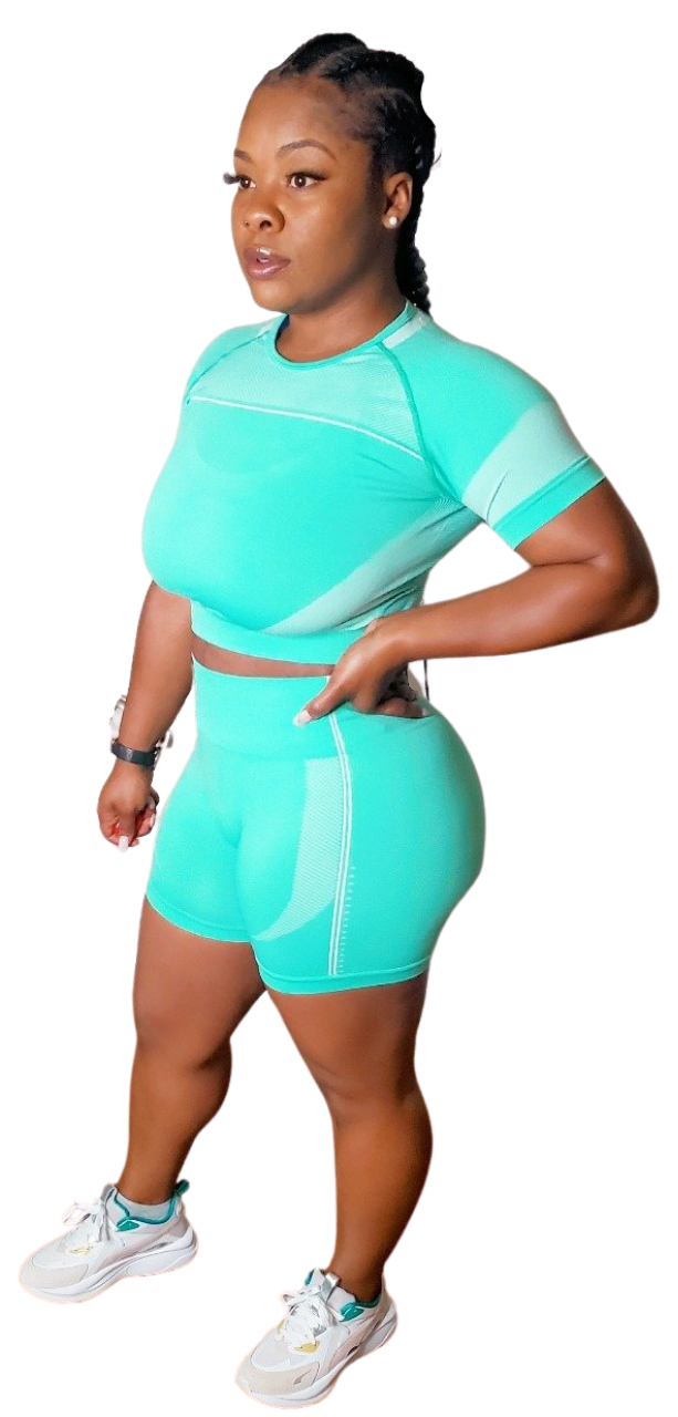 Ultra Seamless Crop T-Shirt and Biker Short SetSeamless technology.Moisture-wicking.Four-way stretch.High-Waisted Bottoms.Machine wash cold (gentle cycle), Tumble dry low or Hang Dry (recommended).